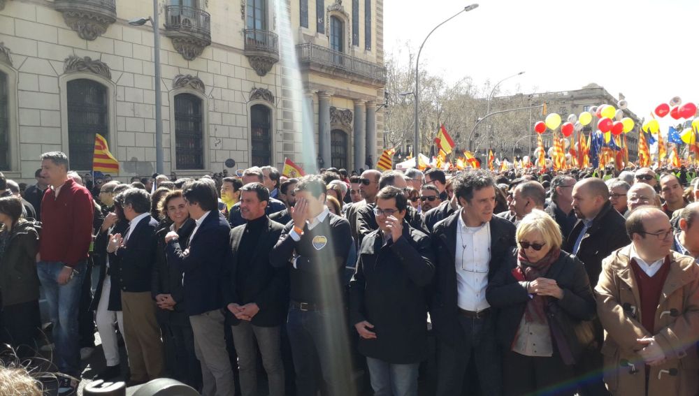 El líder de Ciudadanos responsabiliza a los dos partidos mayoritarios en España del "bloqueo en el sistema electoral" en relación con la situación en Cataluña. El resto de políticos que han acudido a la manifestación convocada por Societat Civil Catalana han aludido a la necesidad de la unidad del país y de formar un Govern lo antes posible.