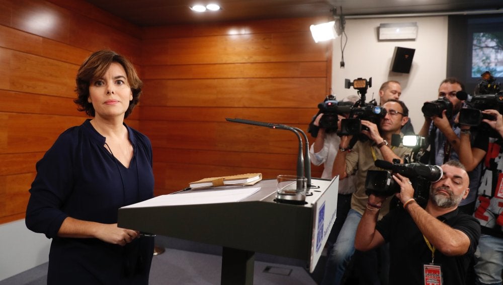 "Vamos a tomar cuantas medidas sean necesarias para proteger lo derechos de los catalanes. Lo que allí se está pisoteando es la libertad, con una administración en huelga, que abandona y divide a los catalanes", señala la vicepresidenta del Gobierno.