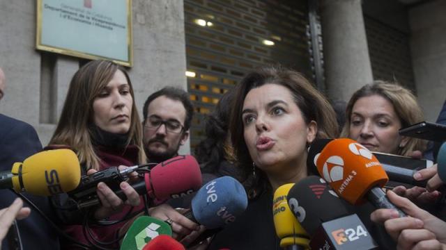 La vicepresidenta del Gobierno, Soraya Sáenz de Santamaría, ha trasladado al vicepresidente del Govern, Oriol Junqueras, que el referéndum sobre la independencia de Cataluña que reclama el gobierno catalán "no se puede negociar" porque ello compete al "pueblo español".