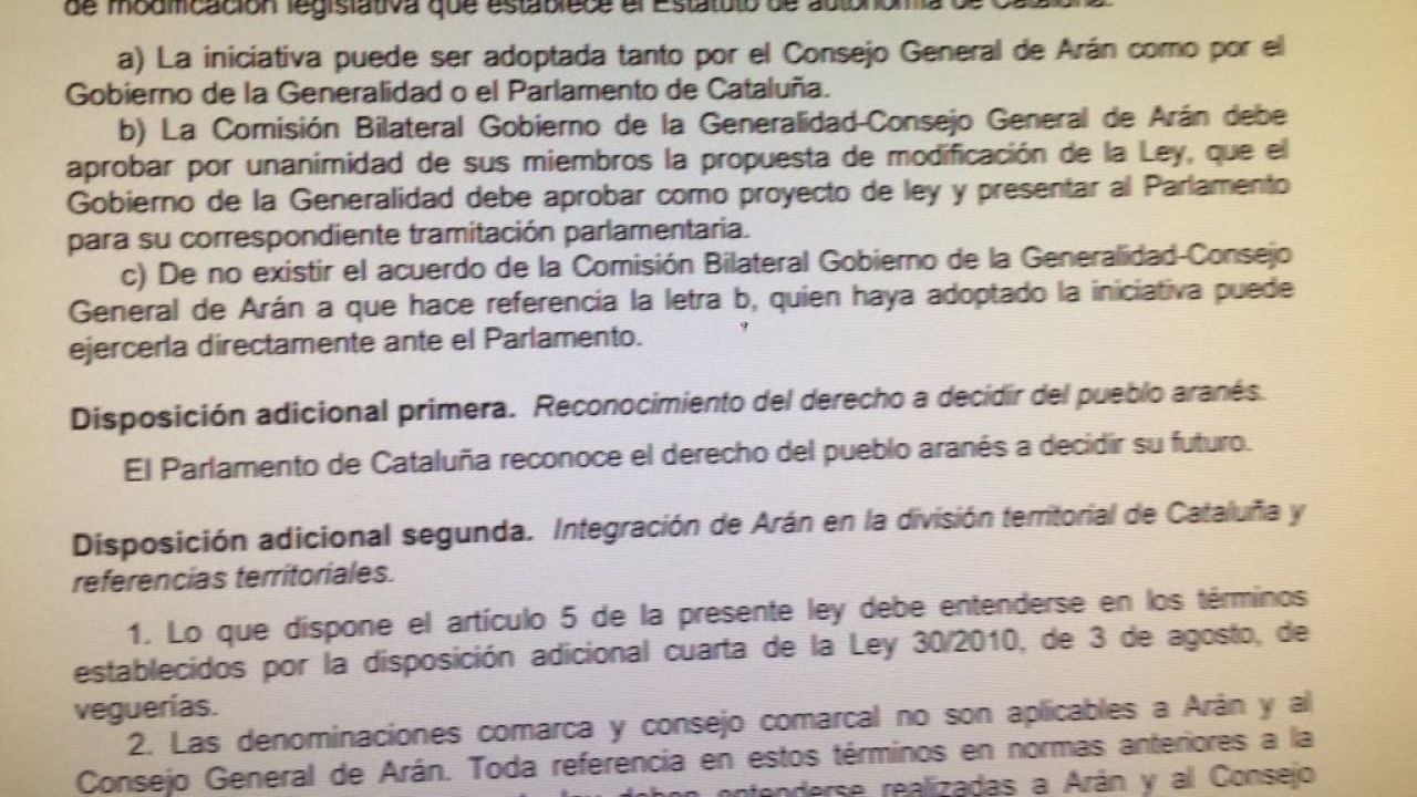 La institución encargó hace una semana un informe jurídico sobre el 'derecho a decidir' de los ciudadanos del Valle. Este informa refleja que ese derecho está reconocido en la disposición adicional primera de la Ley de Arán.