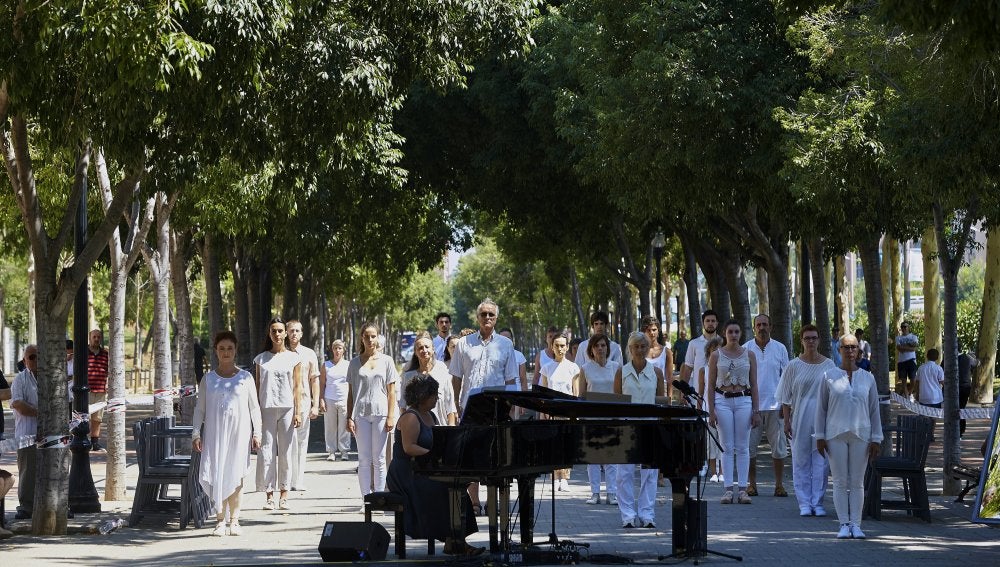 La atención la ha acaparado un espectáculo con bailarines y actores que, al son de las notas de un piano, han ejecutado una coreografía alegórica en la que la ausencia de las víctimas se ha hecho visible por la presencia de sillas vacías