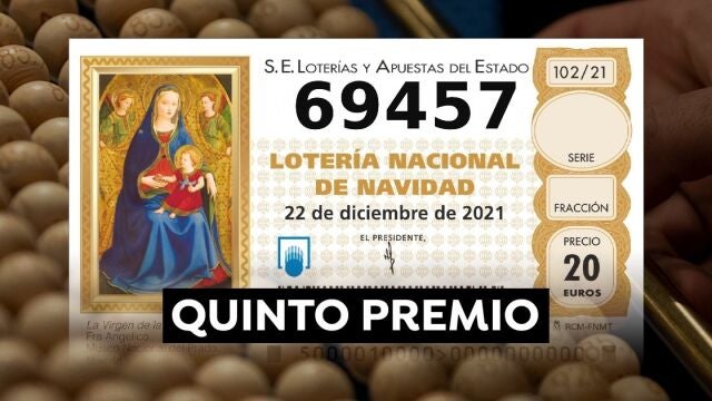 El quinto quinto premio de la Lotería de Navidad es el número 69.457.