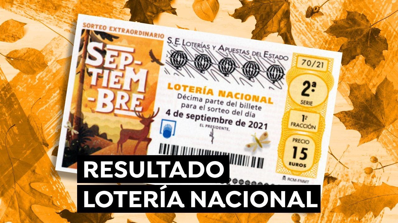Comprueba el resultado del Sorteo Extraordinario de Septiembre de la Lotería Nacional de hoy, sábado 4 de septiembre de 2021. A continuación podrás descubrir los números premiados y si tu décimo ha sido agraciado.