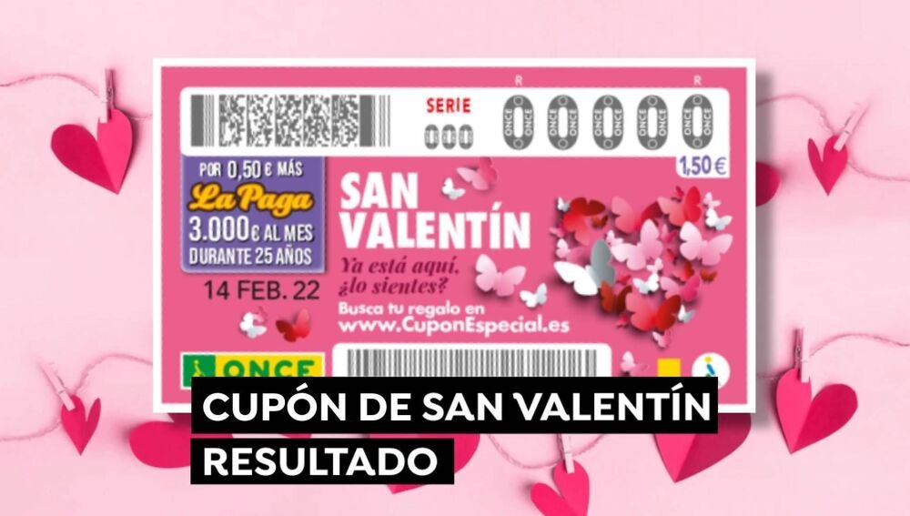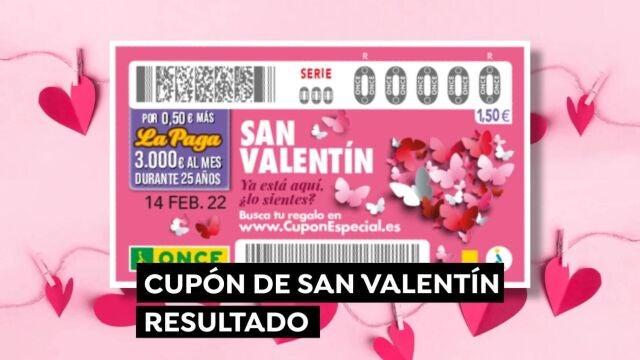 Nota: Los únicos resultados oficiales válidos del sorteo del Cupón Diario de la ONCE de San Valentín son aquellos que hace públicos la sociedad estatal Organización Nacional de Ciegos Españoles. Antena 3 no se hace responsable en caso de errores u omisiones en este artículo.