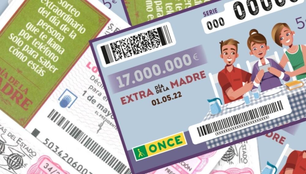 El Día de la Madre se celebran los sorteos de la ONCE y de la Lotería Nacional. El sorteo Extra del Día de la Madre 2022 de la ONCE reparte 17 millones de euros al cupón. Además, también hay otros con un valor inferior. Se reparten 9.000 premios de 100 euros y 90.000 premios de 10 euros, y 900.000 premios de 5 euros a la última cifra.