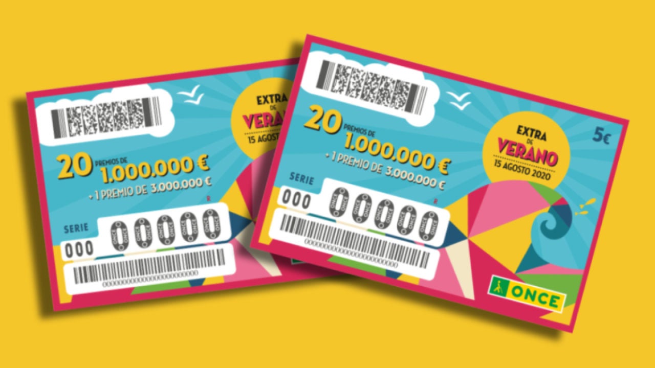 El Sorteo Extra de Verano de la ONCE 2020 reparte un premio de 3 millones de euros al acertante de las cinco cifras y serie premiadas y 20 premios adicionales de un millón de euros.