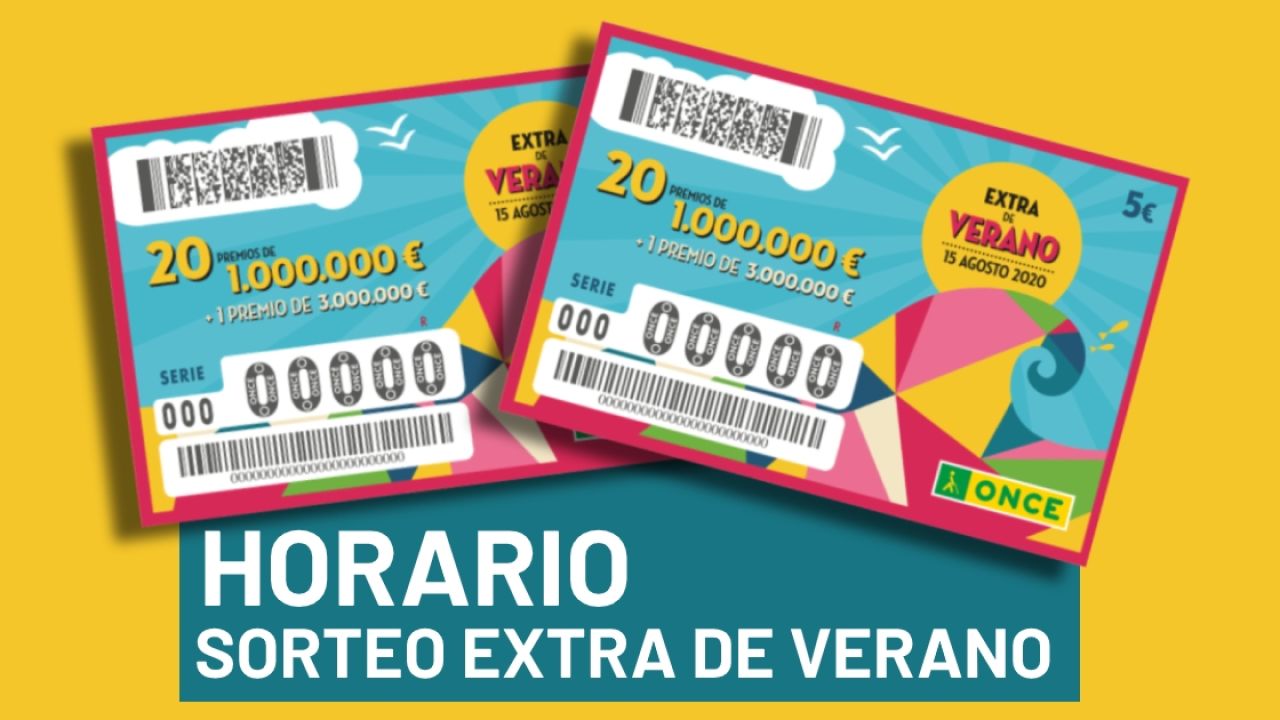El Sorteo Extra de Verano de la ONCE se celebra hoy sábado 15 de agosto, día de la Asunción de María. La hora estimadapara el inicio de este sorteo especial de la ONCE será a las 21:15 h(hora peninsular). Podrás seguir la retransmisión del Sorteo Extra de Verano de la ONCE 2020 en directo a través de la web de Antena 3 Noticias y comprobar si tu número ha sido premiado.