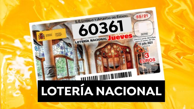 El primer premio del sorteo de la Lotería Nacional de hoy, jueves 15 de julio de 2021 es el 60.361. El ganador de la Lotería Nacional se lleva un premio de 300.000 euros.