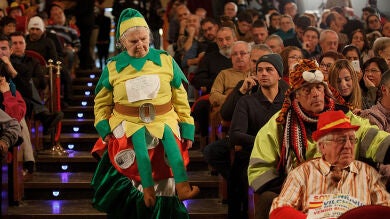A su vez, en el Teatro Real se han visto diferentes disfraces, un 'Don Quijote', un 'obispo' y grupos de amigos, son los primeros en entrar al lugar. Se han visto desde quien se ha hecho un traje con décimos, pasando por personas que van directamente de árboles de Navidad. Estos son algunos de los disfraces que se han podido ver hoy en el Teatro Real durante el sorteo de la Lotería de Navidad.