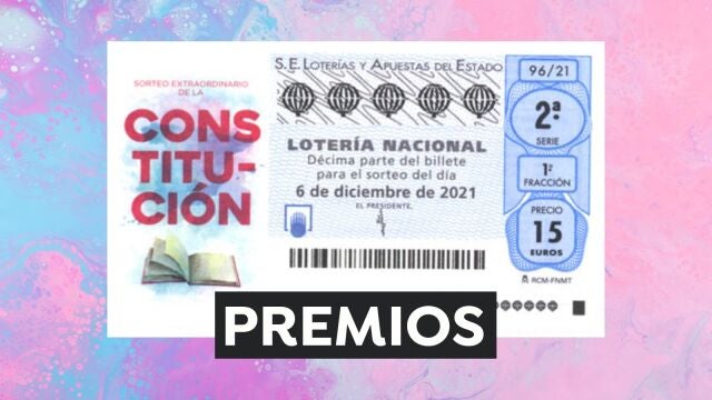 La Lotería Nacional celebra este lunes, 6 de diciembre de 2021, el Sorteo Extraordinario de la Constitución, donde repartirá más de 105 millones de euros, divididos en más de 30.000 premios, incluyendo un premio especial acumulado de 15 millones de euros a un solo décimo.