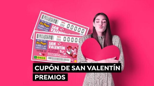 No lo dudes y hazte ya con tu cupón del Sorteo ONCE San Valentín 2022 porque suculentos premios te están esperando. La ONCE se ha propuesto que pases un Día de los enamorados inolvidable y, por ello, a sus premios habituales suma la posibilidad de ganar ‘La Paga’, lo que supone una paga de 3.000 euros al mes durante 25 años. Para aspirar a ganar este gran regalo extra, solo tienes que añadir 0.50 céntimos más al precio habitual del cupón (1’50 €). Por lo tanto, por tan solo 2 € puedes hacerte con un premio que te acompañe gran parte de tu vida.