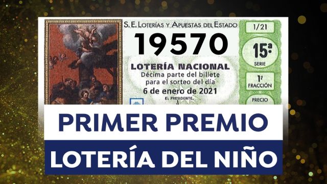 El primer premio de la Lotería del Niño de hoy, miércoles 6 de enero, ha sido para el número 19570 con una dotación de 200.000 euros por cada décimo en el Sorteo Extraordinario del Niño, que ha estado muy repartido.