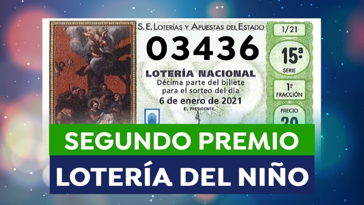 El número agraciado con el segundo premio de la Lotería del Niño 2021, dotado con 750.000 euros por serie, 75.000 euros por décimo, ha sido el 03436.