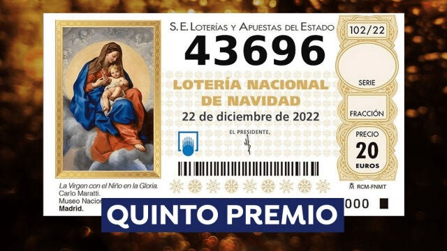 El 43.696 ha sido el segundo quinto premio de la Lotería de Navidad 2022. Este número ha sido cantado a las 10:35 horas, en la tercera tabla.