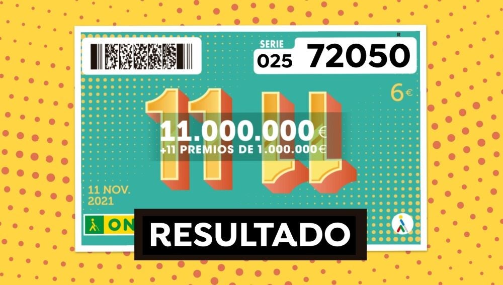 El número ganador del sorteo 11/11 de la ONCE ha sido el 72050, serie 025, dotado con 11 millones de euros.