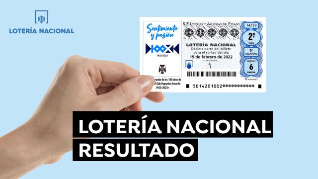El primer premio del sorteo de la Lotería Nacional de hoy sábado 19 de febrero ha sido el número 62.261, el cual está premiado con 600.000 euros a la serie, 60.000 euros al décimo. ¡Felicidades, disfruta de tu premio!
