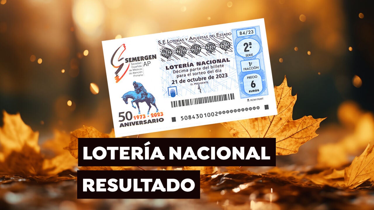 En 1 hora dará comienzo el sorteo de la Lotería Nacional de hoy sábado 21 de octubre. Desde aquí podrás consultar los números premiados para saber si has sido uno de los afortunados. Para seguir el sorteo de hoy en directo, mantén actualizada esta página.