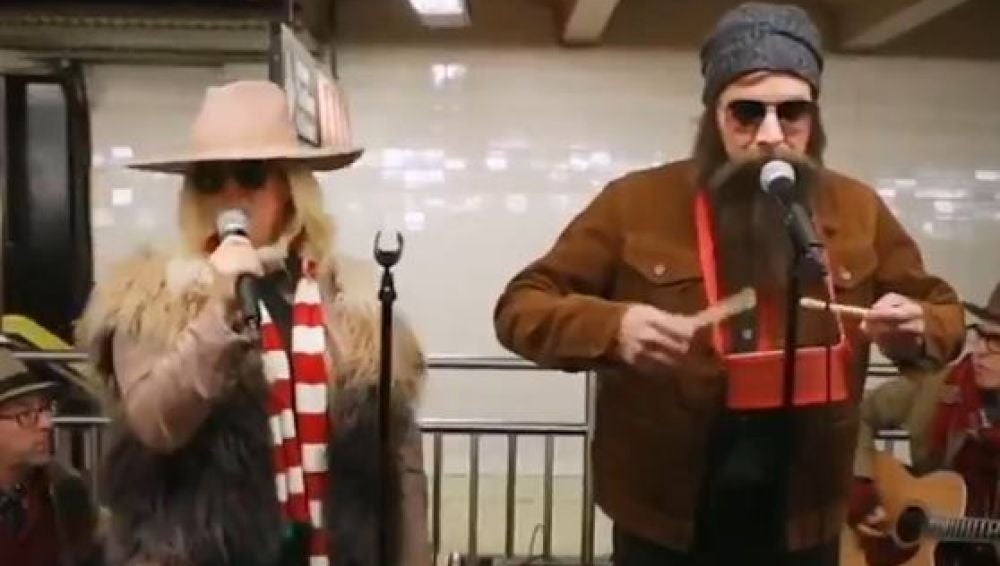 El presentador Jimmy Fallon y la cantante Alanis Morissette tocaron disfrazados en el metro de Nueva York para sorpresa de los usuarios.
