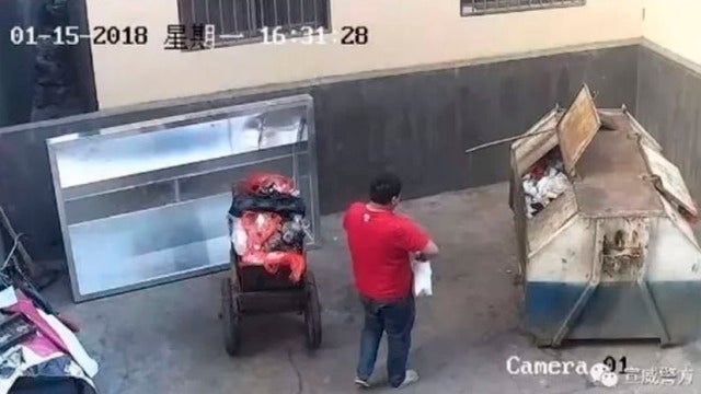 Una cámara de seguridad grabó el momento en el que un hombre tiraba a una bebé envuelta en papel en un contenedor. La pequeña había nacido en casa y la madre no sabía que estaba embarazada.