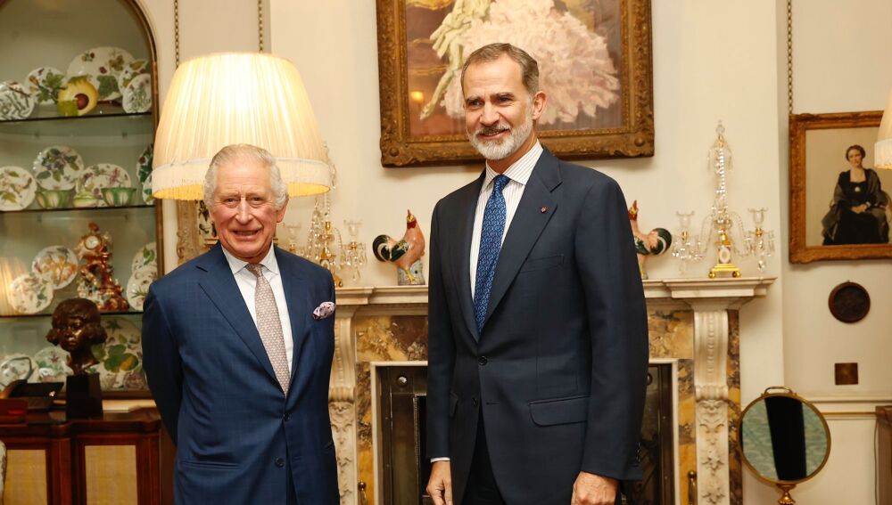 El rey de España, Felipe VI, se ha reunido este lunes con el monarca británico, Carlos III, en un encuentro privado que ha tenido lugar en Clarence House, la residencia oficial de este último en Londres. Se ha producido algo más tarde de las 17:00 horas (hora local) antes de la participación de Felipe VI en la cena de gala de celebración del 135 aniversario de la Cámara de Comercio española en el Reino Unido, según se ha informado desde la Casa Real, que ha publicado fotografías de ambos soberanos de una forma distendida.