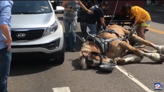 Los caballos con carruaje son un controvertido tema en EEUU, ya que muchos de los animales llevan a personas durante horas sin apenas descanso. Un ejemplo de lo que ocurre ha pasado en Charlestone, EEUU, cuando un caballo se ha desmayado mientras llevaba a cinco personas en su carruaje. Los bomberos ayudaron al equino a levantarse tras retirarle el arnés, y no volverá a 'trabajar' hasta que un veterinario dé el visto bueno.
