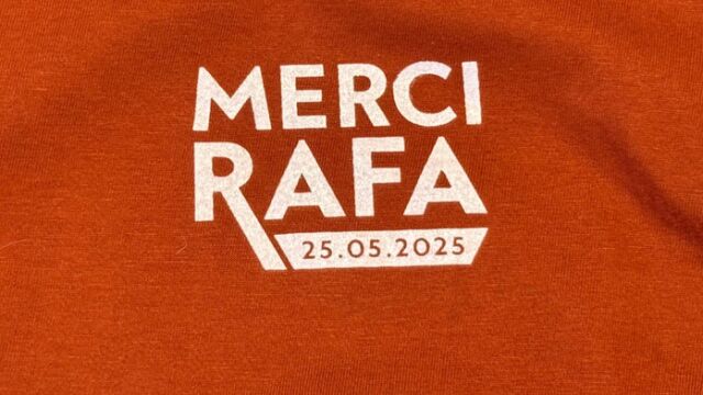 Miles de camisetas con la leyenda "Gracias Rafa" se repartieron gratis en el estadio de Roland-Garros. Los privilegiados espectadores disfrutaban del emotivo homenaje al tenista español por sus catorce títulos . Aplaudían, vitoreaban y coreaban el nombre de Rafa, Rafa, Rafa y hacían la ola luciendo sus camisetas en la pista Philippe-Chatrier. Camisetas que dibujan un mosaico con el nombre de Rafa, un corazón y el número 14, los títulos conseguidos por el mallorquín en Francia.