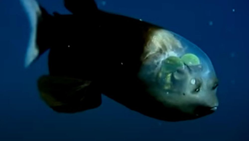 Se trata de un pez barreleye o Macropinna microstoma. Estos peces viven en la zona crepuscular del océano a profundidades de entre 600 y 800 metros.