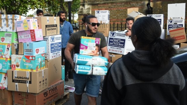 Esta joven de 17 años colabora con otras 40 personas en el centro deportivo Harrow Club, reconvertido tras el suceso en un almacén donde guardan parte de las miles de donaciones recibidas por los vecinos para las personas desalojadas del inmueble, compuesto por 120 apartamentos, muchos de ellos de protección oficial.