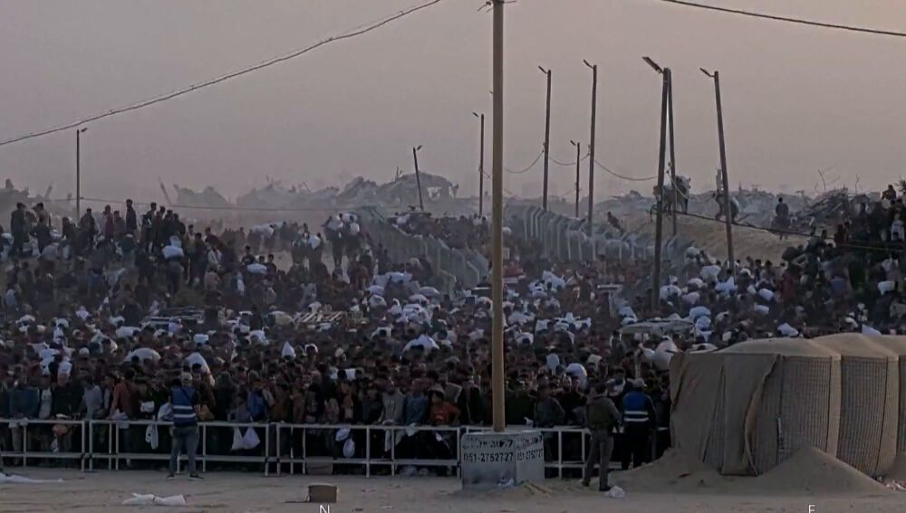 Los gazatíes hambrientos acudieron a este complejo después de que la Fundación Humanitaria para Gaza, respaldada por Estados Unidos y encargada de su gestión, anunciara en sus redes sociales que iba a abrir este centro a las cinco de la mañana después de que permanecieran cerrados ayer durante todo el día.