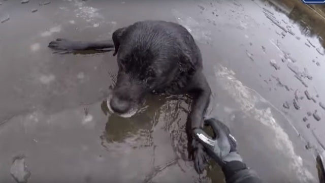 "Me aseguré de estar bien sujeta a la cuerda y comencé a cruzar el hielo. Cuando me acerqué a Hardy, pude escucharlo gimotear, por lo que seguí llamándolo para tratar de tranquilizar al pobre perro", cuenta Miller. Finalmente consiguió agarrarlo por el cogote y ayudarle a levantarse sobre el hielo.