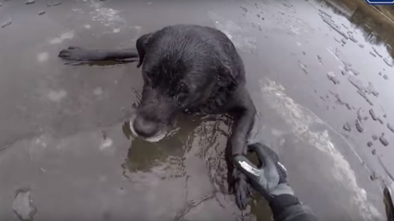 La oficial Jaqui Miller acudió a la escena para salvar a Hardy. Se ató una pierna a una cuerda para que sus compañeros pudieran rescatarla si adentraba en el hielo. Según publica The Telegraph, la mujer se metió en el agua y consiguió coger al animal, que llevaba casi "en el agua helada".