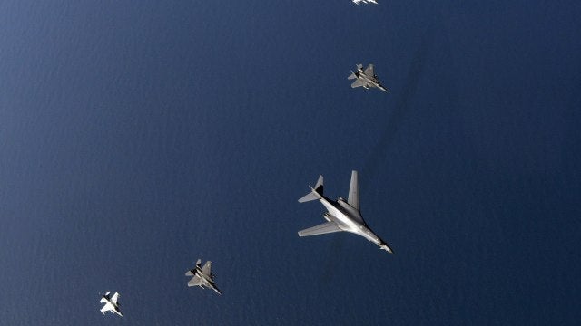 El vuelo de los dos bombarderos estratégicos B1B 'Lancer' de la Fuerza Aérea de Estados Unidos en unas maniobras tuvo lugar el lunes, después de que el presidente norteamericano, Donald Trump, abriera la puerta a una reunión con el mandatario de Corea del Norte, Kim Jong Un.