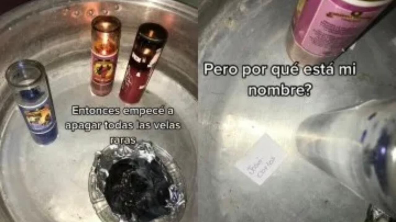 Debajo de cada vela había un nombre: el del joven protagonista del vídeo y el de su padre. Junto a los papeles había un mensaje que decía: "yo domino a mi hijo"; mientras que los otros se referían al padre: "miel de amor" y "ven a mí".