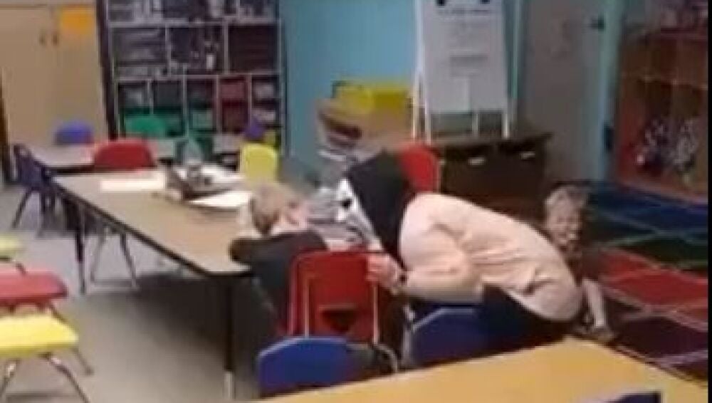 La broma llegó a tal punto que se puede ver como uno de los niños corre huyendo de una de las trabajadoras disfrazadas.