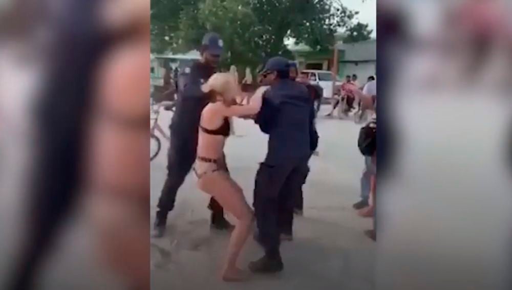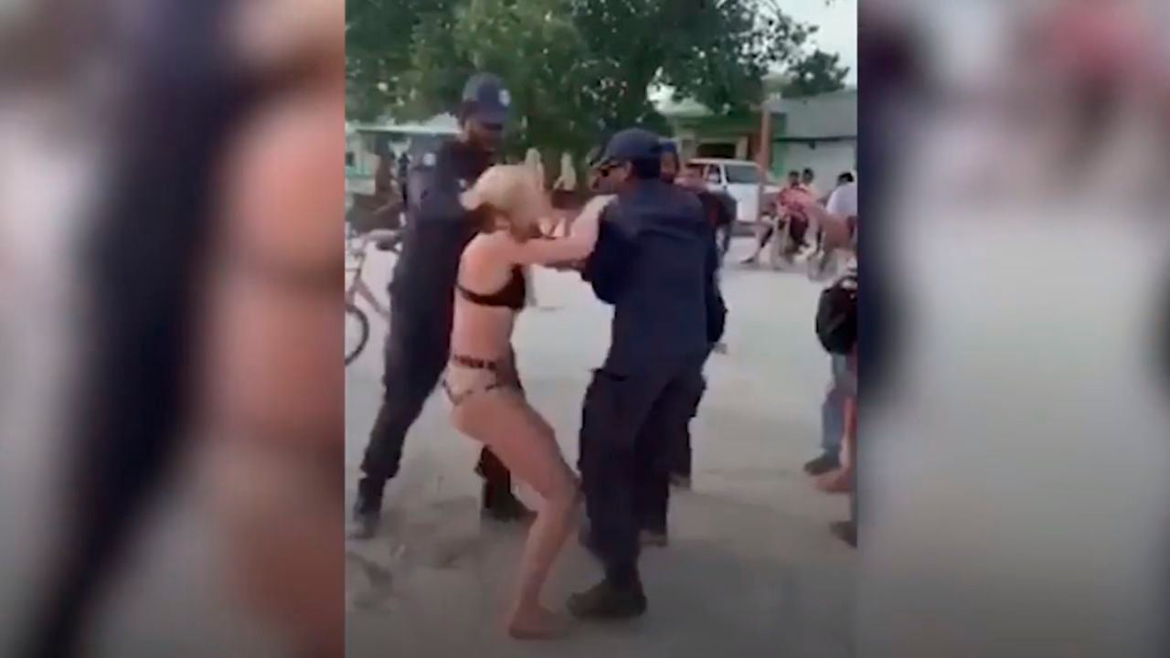 Una turista británica ha sido arrestada en la isla de Maafushi, en Maldivas, por llevar puesto un bikini. Vídeos del momento del incidente muestran como la mujer se resiste ante tres policías que intentan llevársela de la playa. Uno de los policías usa una toalla para intentar taparla. En otro de los vídeos del incidente se ve como la mujer, Cecilia Jastrzembska, una bloguera, le quita las gafas de sol a uno de los policías.