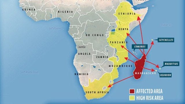 Sudáfrica, isla Mauricio, Seychelles, Tanzania, isla Reunión, Mozambique, Kenia, Etiopía y las Comoras suman ahora a Malaui como países en peligro por un posible brote de peste.