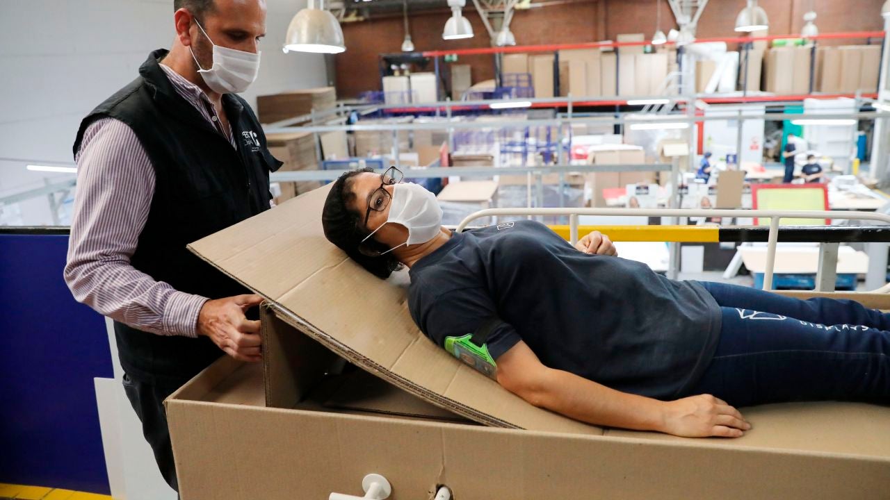 Estas camas-ataúdes están siendo fabricadas por la empresa ABC Displays. Antes de que comenzara la pandemia, fabricaban piezas en cartón para publicidad pero, tras el inicio de la crisis sanitaria, cambió su eje de trabajo y ahora puede producir hasta 300 camas al mes e incluso exportarlas, aunque admiten que todavía no tiene ningún pedido.