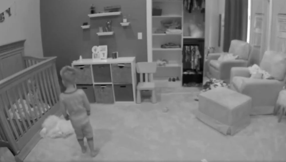 El hermano mayor es quien planea la huida del pequeño de su cuna y le ayuda a hacerlo. Dos cámaras de seguridad han captado el divertido momento que ha hecho sonreír a millones de personas.