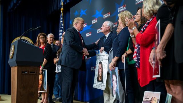"Estos son los ciudadanos estadounidenses permanentemente separados de sus seres queridos, porque los mataron inmigrantes ilegales criminales", ha dicho Trump.