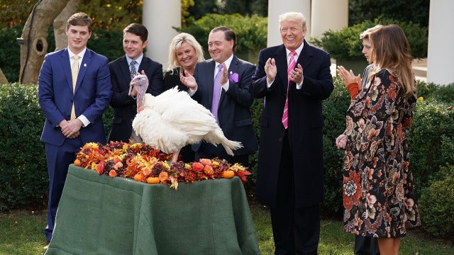 En compañía de su esposa, Melania Trump, y el hijo de ambos, Barron, el presidente indultó en una ceremonia en la Rosaleda de la Casa Blanca a un pavo de nombre 'Drumstick', criado en Minesota. Otro pavo, llamado 'Wishbone' y procedente asimismo de Minesota, también fue indultado hoy por orden del presidente, pero no se dejó ver en la ceremonia.