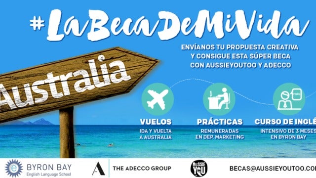 'La beca de mi vida' es una nueva iniciativa tomada por Adecco y AUssieYouTOO. Ambas compañías ofrecen una beca de 8.000 euros con todos los gatos pagados durante tres meses a un joven creativo que sea capaz de diseñar una campaña de marketing original.