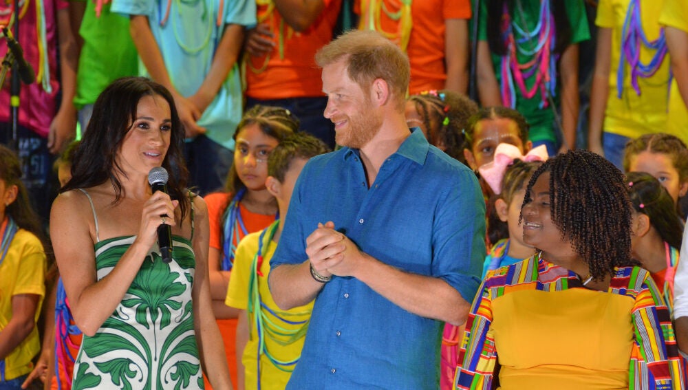 Es su primera visita oficial a Colombia y el príncipe Harry y Meghan Markle han dejado muy buena impresión. La Duquesa de Sussex ha sorprendido a los niños hablando español en una escuela infantil en Bogotá. Con una sonrisa ha comentado: "¡Tienes la misma edad que mi hijo Archie!". Los niños se rieron divertidos con la expresión de Meghan. Harry también se animó a practicar español y preguntó los nombres y edades de los estudiantes.