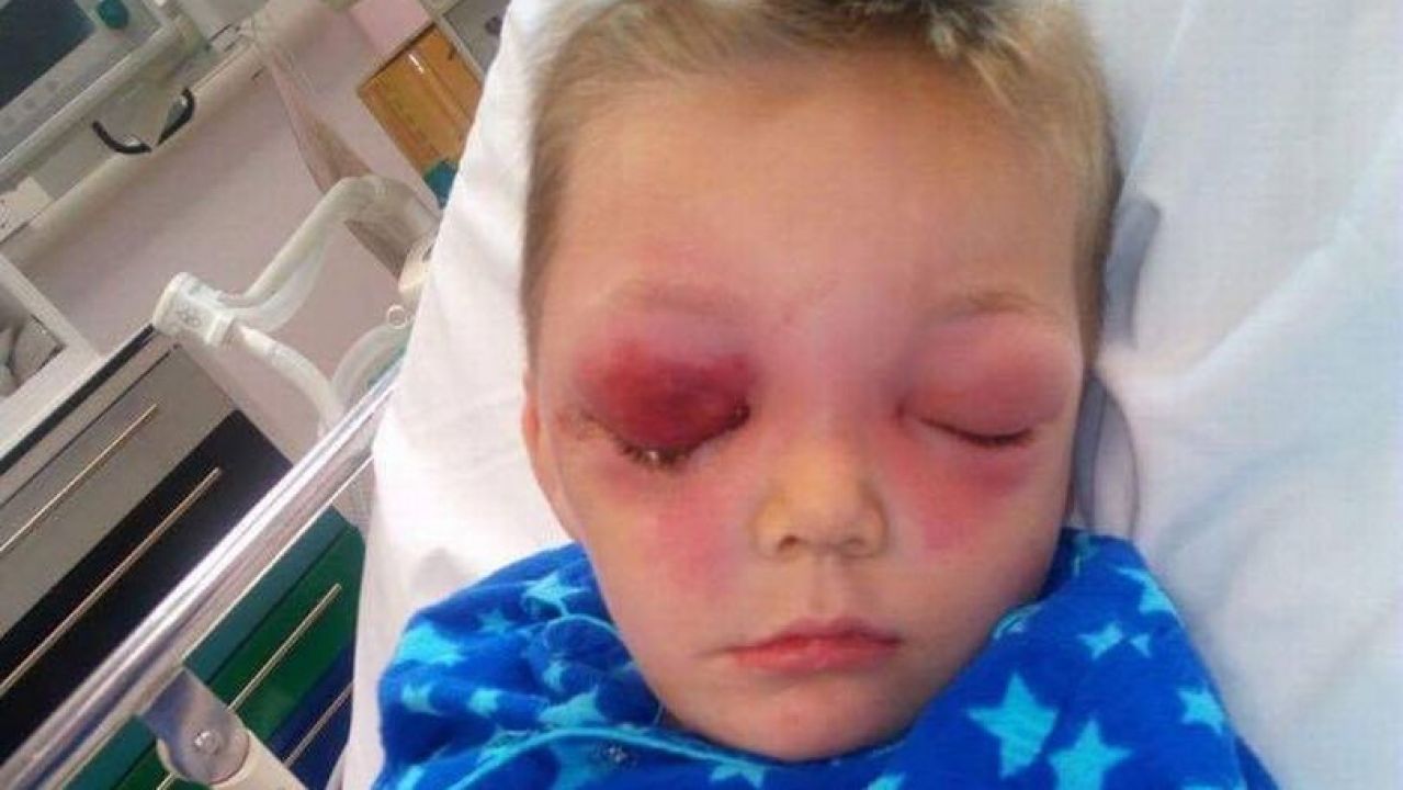 Rhys Pritchard, de Cardiff (Gales) se encontraba jugando en su jardín cuando se cayó golpeándose su cabeza. Su madre lo llevó rápidamente al hospital y los médicos le cosieron el corte y enviaron al pequeño a casa, pero horas más tarde sus ojos comenzaron a hincharse, impidiéndole que los abriera.