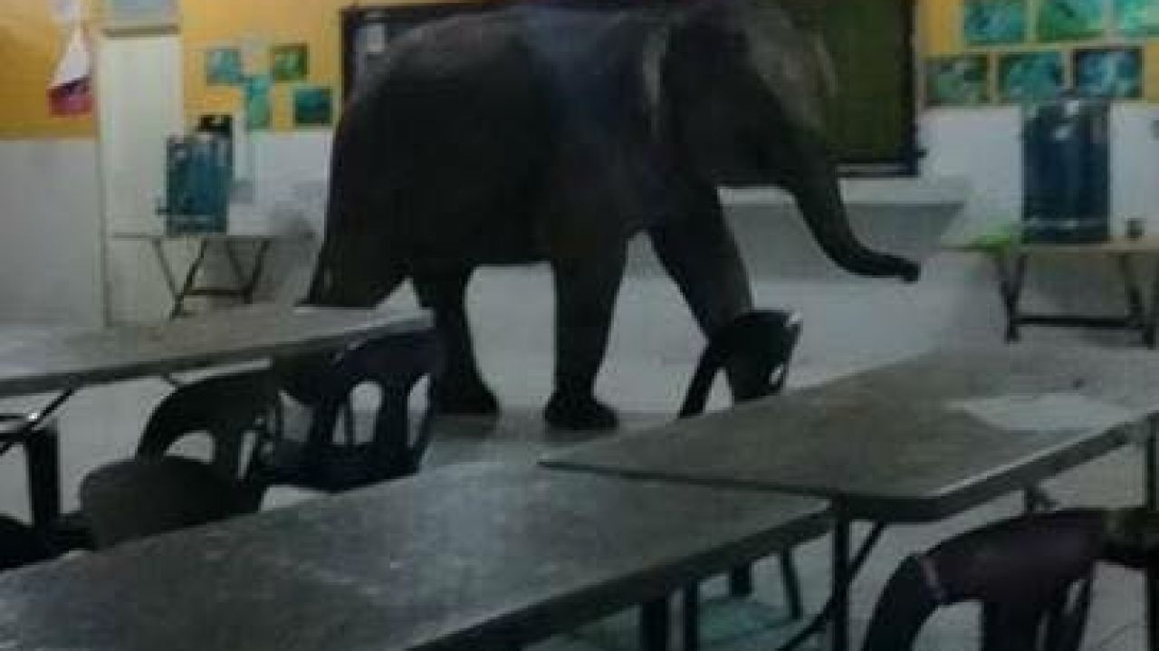 El paquidermo se adentró en busca de comida en el colegio SMK de Telupid, una pequeña población de la región, y recorrió durante la mañana del jueves varias estancias del edificio mientras algunas personas se encontraban en las aulas, como se aprecia en un vídeo publicado en el perfil de Facebook de la Policía de Sabah.