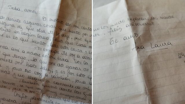 "Buscando unos papeles en casa encontré una carta de mi primera novia a los 19 años. Anita dónde quieras que estés te mando un beso grande y ojalá seas feliz", rezaba el texto del chico junto a dos fotografías realizadas a la carta de la que fuera su exnovia, Ana Laura.