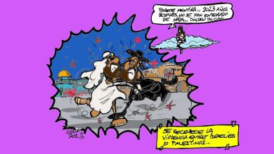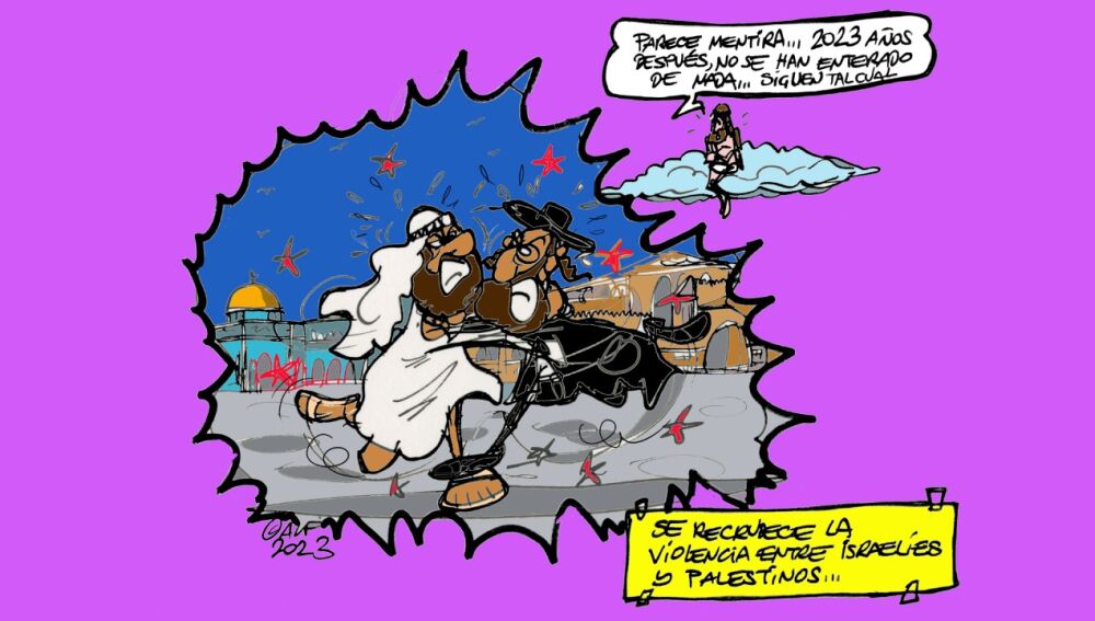 Se recrudece la violencia entre israelíes y palestinos: "Parece mentira... 2023 años después, no se han enterado de nada... siguen tal cual...", se lee en la viñeta gráfica de esta semana de Alfredo Boto-Hervás.