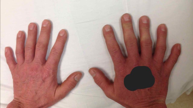 Esta curiosa imagen ha sido publicada en el portal Figure 1. Muestra a un hombre que tiene polidactilia, un trastorno genético por el que un ser humano nace con más dedos de lo normal.