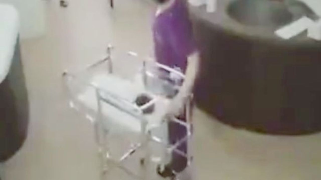 Un recién nacido cayó al suelo durante sus primeras horas de vida. El pequeño se encontraba envuelto en una manta en una camilla con ruedas cuando la enfermera, que estaba balanceándole, empujó la camilla para que fuese su compañera quien cogiese el relevo. Sin embargo, la camilla se inclinó hacia delante y volcó.