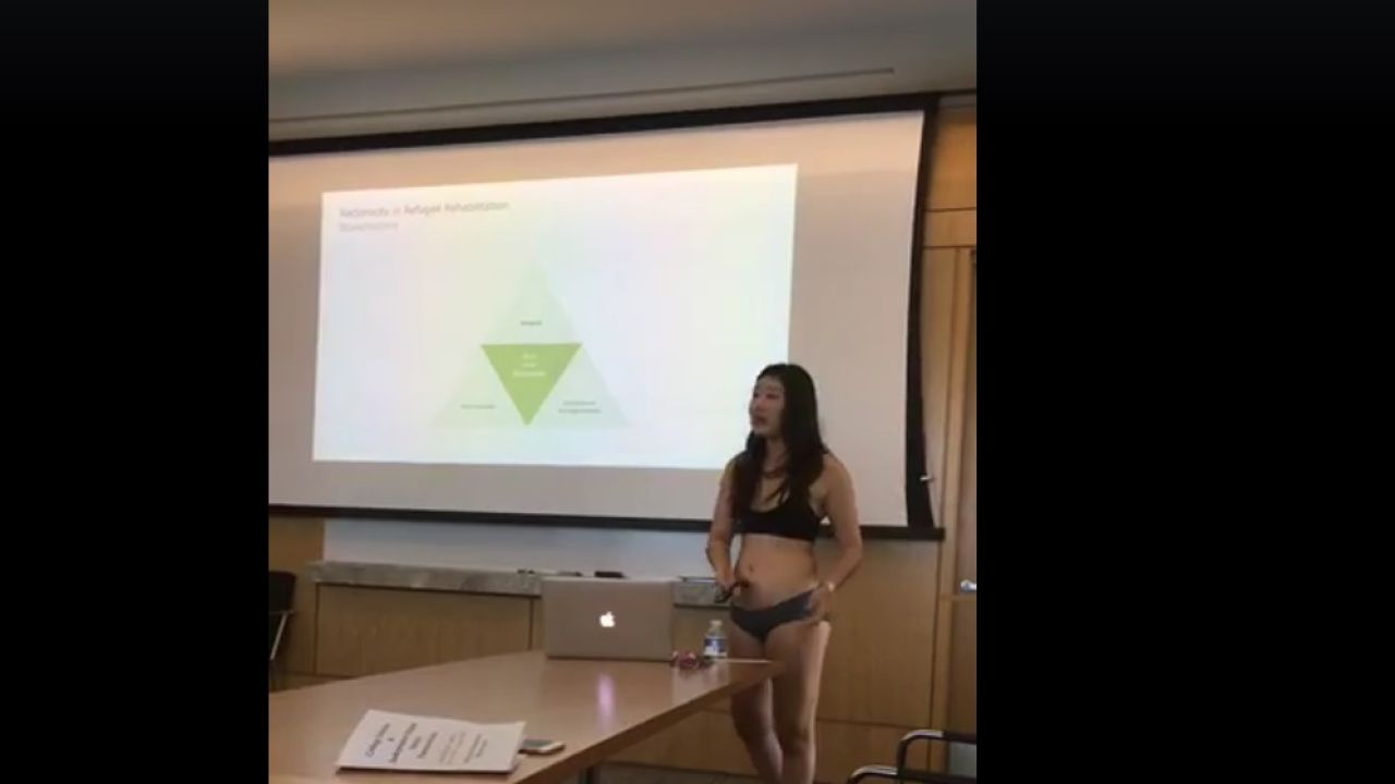 Letitia Chai es estudiante de último curso en la Universidad de Nueva York. Esta joven eligió la presentación de su tesis para protestar contra "las creencias opresivas y la discriminación", y lo hizo de una forma muy peculiar: quitándose la ropa y quedándose en ropa interior.