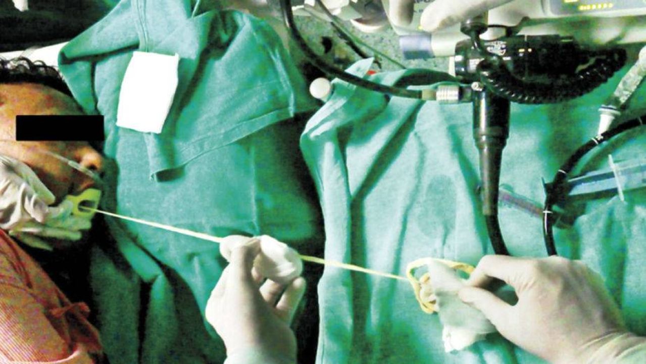 Los médicos le realizaron una endoscopia y en ella se confirmó el largo parásito que vivía en el intestino delgado del paciente.